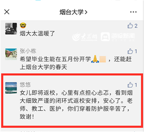 “女兒即將返校,心里有點擔心忐忑。看到煙大細致嚴謹的閉環式返校安排,安心了。”一位學生家長在煙臺大學微信公眾號中留言道。自5月17日第一批學生“回歸”,煙臺大學的返校復學工作正式迎來了緊張的大考。這道事關全校師生健康安全的大題,煙大是如何作答的?一起來看一下。