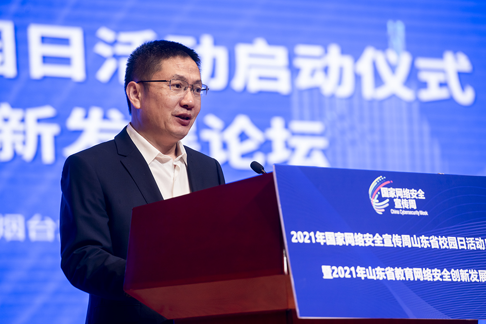 【本站訊】網(wǎng)絡(luò)安全為人民,網(wǎng)絡(luò)安全靠人民。10月12日,2021年國家網(wǎng)絡(luò)安全宣傳周山東省校園日活動啟動儀式暨山東省教育網(wǎng)絡(luò)安全創(chuàng)新發(fā)展論壇在煙臺大學(xué)舉辦?;顒佑墒∥W(wǎng)信辦和省教育廳聯(lián)合主辦,煙臺大學(xué)和山東教育電視臺承辦。山東省委網(wǎng)絡(luò)安全和信息化委員會辦公室副主任趙樹嶺;山東省委教育工委副書記,省教育廳黨組副書記、副廳長白皓出席活動并講話。煙臺大學(xué)校長段培永出席活動并致辭,國家計算機網(wǎng)絡(luò)與信息安全管理中心山東分中心主任安茂波,煙臺大學(xué)副校長宋中民、畢可志,山東警察學(xué)院黨委委員、副院長鞠旭遠,煙臺市委宣傳部副部長、網(wǎng)信辦主任王洪青,公安部第一研究所專家李坤出席啟動儀式。